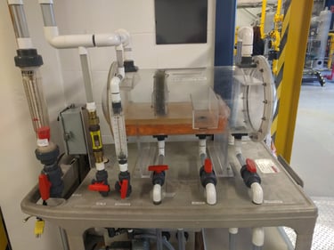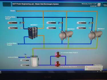 In this gallery you will see a lot of cool apparatus, processes, unit operations, SCADA systems, and other fun machines. You will find technology such as pumps, compressors, heat exchangers, fully functional well site, pH sensors, electron microscope, x-ray diffractometer, gas chromatographer, amine sweetener, methanol distillation system, lab scale Hempel distillation, water softener, climbing film evaporator and even atomic nebulizer.