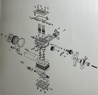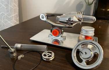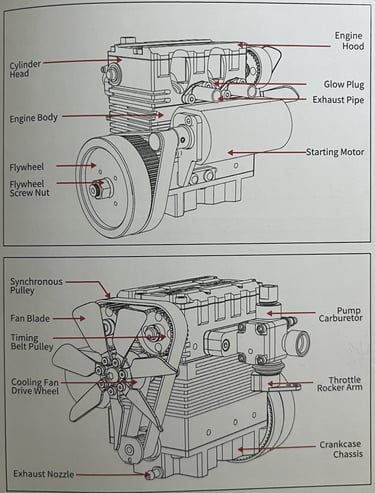 After understanding the basic thermodynamic principles of a basic Stirling heat engine I have stepped up and embarked on building a fully functioning 4 stroke 2 cylinder engine. This mini-powerhouse runs on the exact same principles of a real-life engine, right down to the tiniest detail. The engine parts were machined to with meticulous craftsmanship in Shenzhen, China by SEMTO. I also sourced glow plugs, ignition module control, fuel tanks, lithium battery (to power start motor) and 25% nitro fuel. This engine is designed to reach 16,000 RPM if properly tuned This project is a truly fine demonstration of the artistry, craftmanship, patience, and passion.